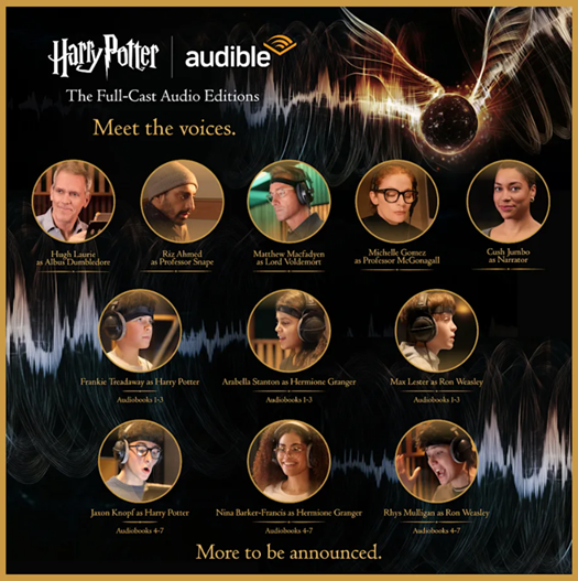 A partial cast announcement has been made by HarryPotter.com, including Hugh Laurie as Albus Dumbledore! The series will also feature Arabella Stanton as Hermione Granger, a fitting choice since she has been officially cast in the role for the upcoming HBO series set to premiere in 2027. Additional casting includes Cush Jumbo as the Narrator, Riz Ahmed as Professor Snape, Michelle Gomez as Professor McGonagall, Matthew Macfadyen as Voldemort, and split casting for Harry Potter, Hermione Granger, and Ron Weasley. The trio will be played by Frankie Treadaway, Arabella Stanton, and Max Lester for books one through three, and Jaxon Knopf, Nina Barker-Francis, and Rys Mulligan for books four through seven, respectively.