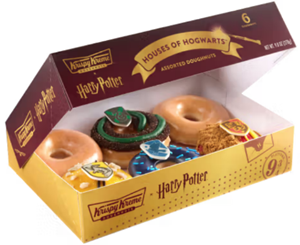 Want to bundle your doughnuts? The Harry Potter Specialty Dozen + Original Glazed Dozen Bundle or the Harry Potter Specialty Dozens to Share Bundle. The Harry Potter Specialty Dozen costs $20.49, but the price for the Original Glazed Bundle is not currently listed. However, the Harry Potter Dozen + Sorting Hat Combo appears on the Krispy Kreme site instead. The Sorting Hat Combo costs $24.57. A six-count, including the four house doughnuts and two original glazed, will be available at select retail locations.
