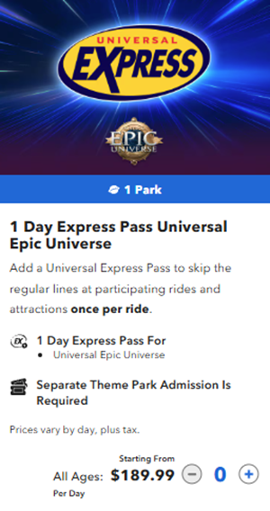 1 Day Express Pass Universal Epic Universe
