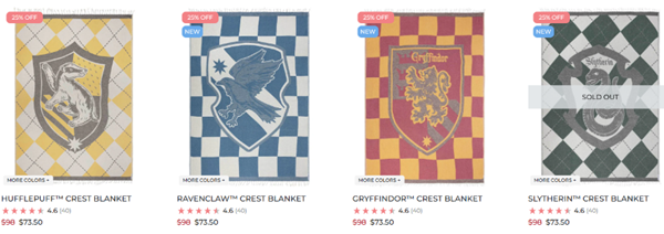 The four blankets are inspired by three Hogwarts houses and the winged keys, as seen in the Sorcerer’s Stone. The Hogwarts houses include Gryffindor, Ravenclaw, and Slytherin. Hufflepuff already had its own house crest blanket. The Winged Key blanket is 228cm by 228cm, while all house crest blankets are 145cm by 193cm. The house crest blankets are $98.00, but are on sale for $73.50. The “Harry Potter Winged Keys – Party Blanket” is $158.00 and is on sale for $118.50.
