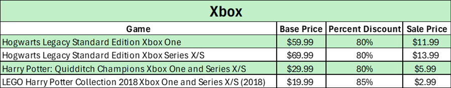 Get the LEGO Harry Potter Collection at a lower price with an 85% discount. This $2.99 deal applies to the 2018 version of the LEGO Harry Potter Collection and is compatible with Xbox One, Xbox Series X/S, and Xbox Cloud Gaming. The Xbox Series X/S and Xbox One versions of Hogwarts Legacy are also 80% off. Harry Potter: Quidditch Champions is also available at 80% off. The Deluxe editions of both Hogwarts Legacy and Quidditch Champions are not included in this sale, which ends on September 1st.
