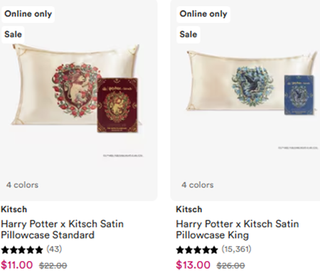 For more Hogwarts theming, Harry Potter x Kitsch Satin Pillowcases are 50% off on the Ulta site. Keep a lookout for more deals during their Fall Haul sale, which begins tomorrow!