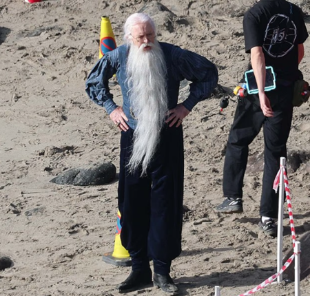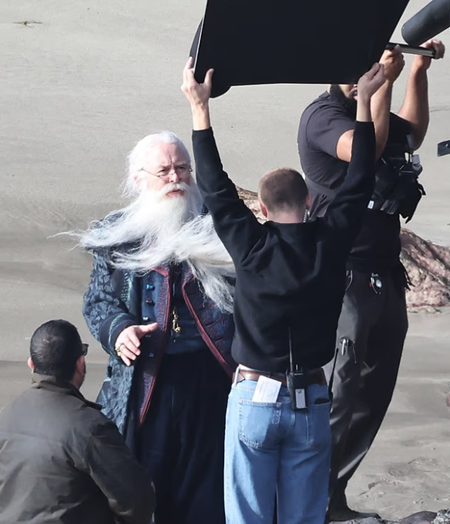 John Lithgow has been spotted on set for HBO’s Harry Potter series, which is currently filming in England. The Daily Mail published photos taken on a Cornwall beach, showing Lithgow in a blue shirt and blue pants layered with a long robe. He is also seen performing alongside crew members and cue cards.