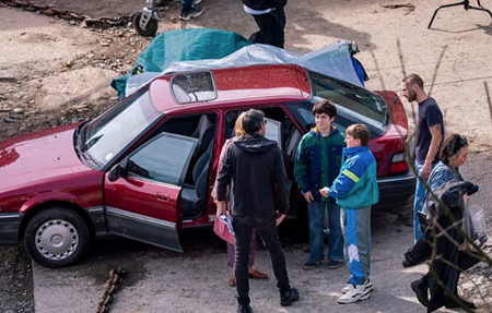 The Dursleys were also seen at a fishing village with sprinklers, cars, and none other than Harry Potter. The cast includes: Dominic McLaughlin as Harry Potter, Amos Kitson as Dudley Dursley, Bel Powel as Petunia Dursley, and Daniel Rigby as Vernon Dursley. Vernon is seen with a man in a grey and blue jacket receiving a brown paper-wrapped object, believed to be a broomstick. Harry, Dudley, and Petunia remain in a red car during the scene.