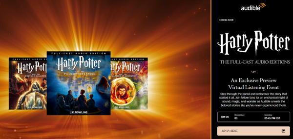 Audible is hosting a virtual listening event the day before the official release of the Harry Potter and the Sorcerer’s Stone Audiobook. Join at 5:45 p.m. EST on November 3rd for this exclusive preview. RSVP at hpexclusivelisteningpreview.com.