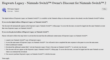 Hogwarts Legacy Nintendo Switch 2 Discount Steps